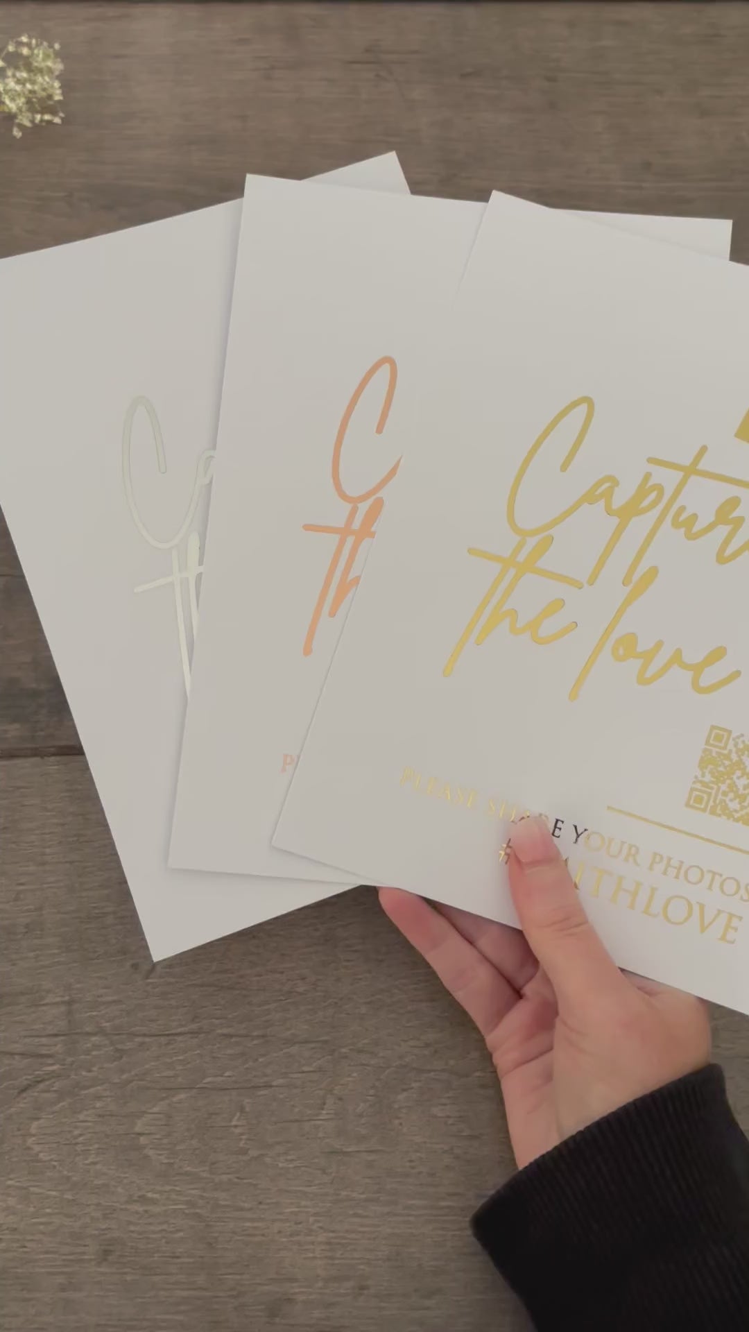 Add a stylish touch to your wedding with this Capture the Love sign, featuring your unique QR code (we can generate it for you). This allows guests to easily upload their photos to your digital wedding album and also socials hashtag
