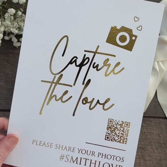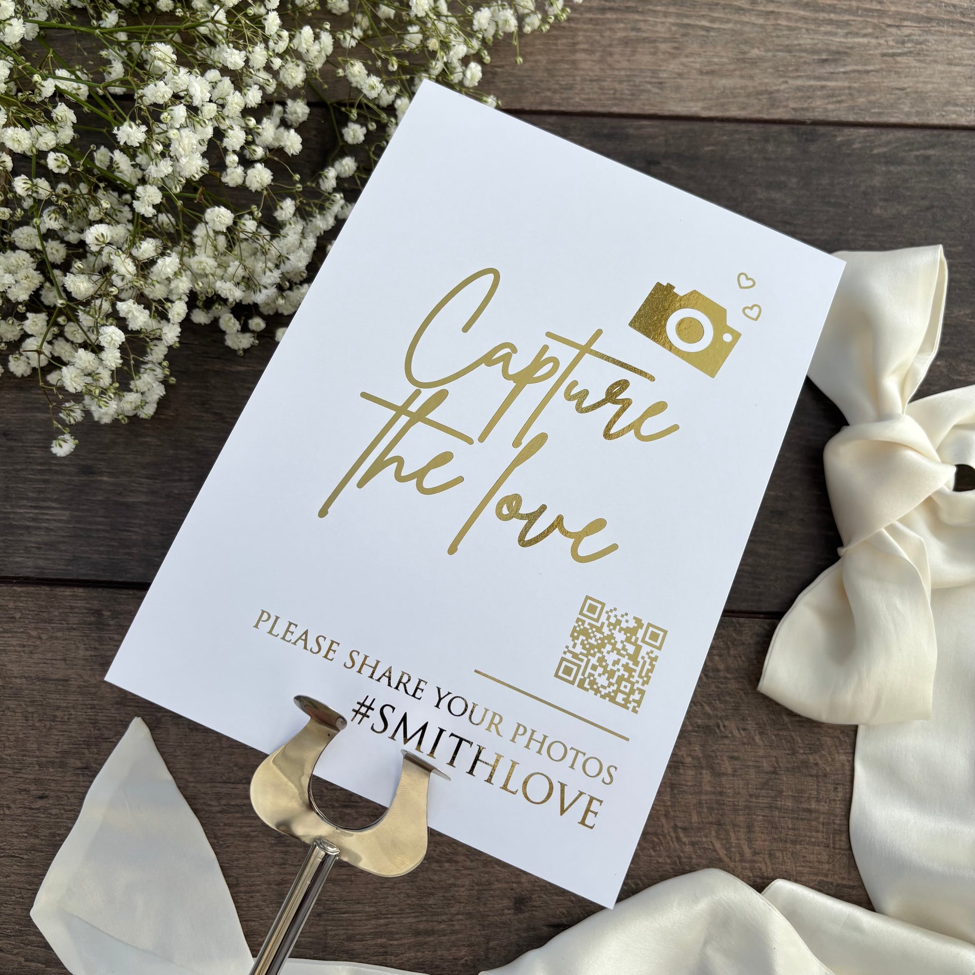 Capture the Love Wedding Foiled Sign with QR Code & Hashtag / Style Eva
