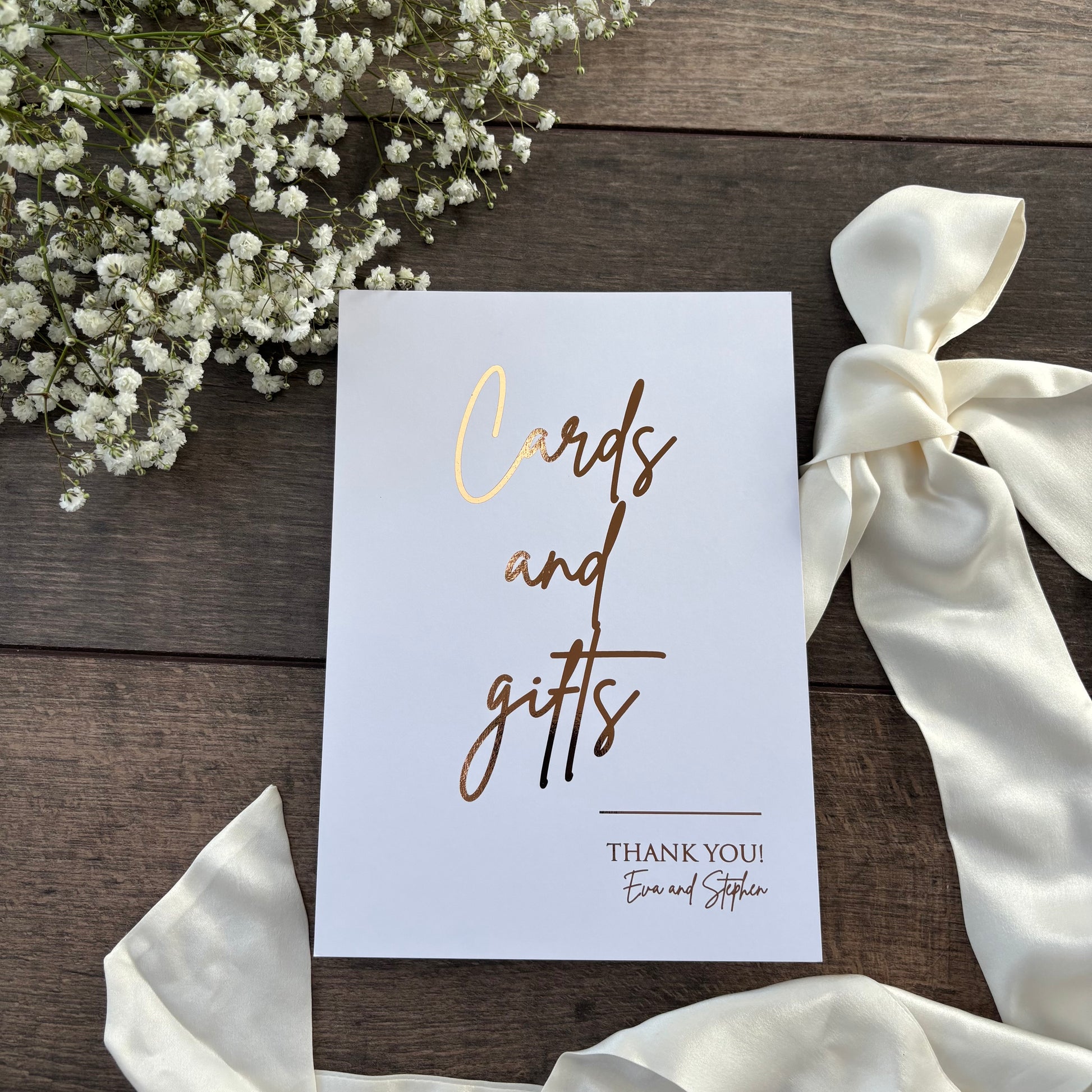 Add a stylish and welcoming touch to your wedding venue with this elegant Cards & Gifts Foiled sign — the perfect way to guide your guests to leave their thoughtful presents.