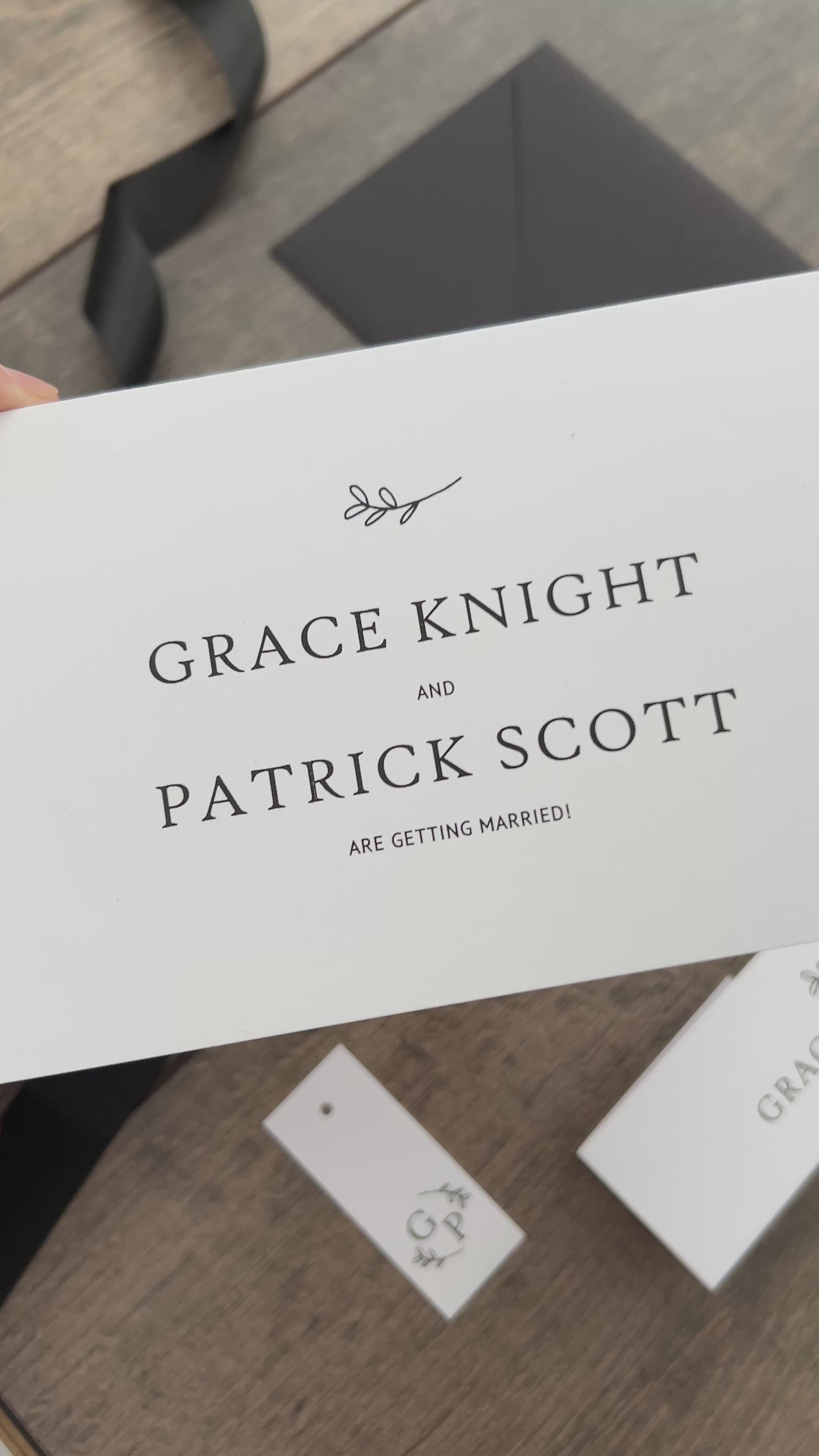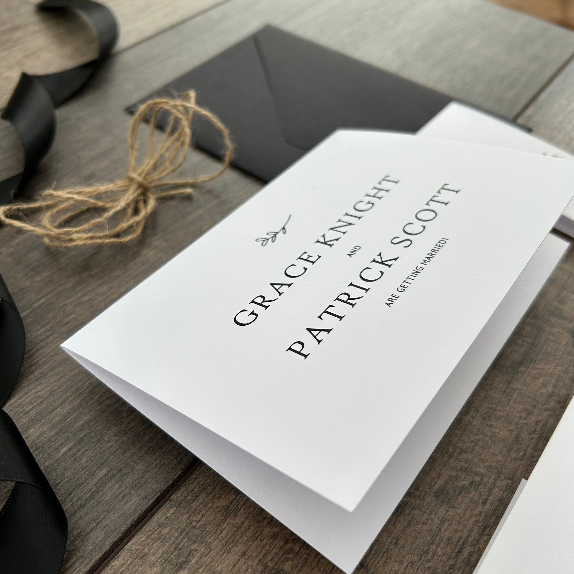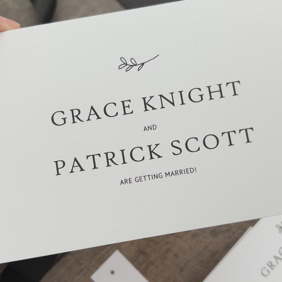 ♡ Our Grace design in the Concertina format is a 4 way folded card which opens to reveal your invitation details, This design features a timeless, classic font paired with an elegant foliage motif. This style is available in four stylish invitation formats: