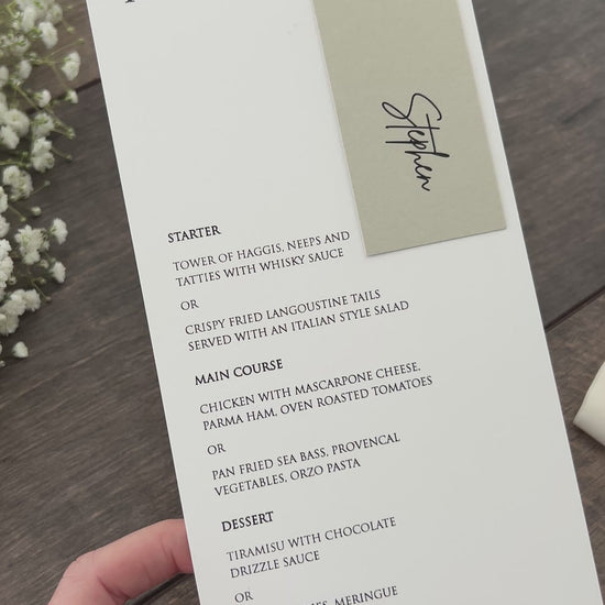 ♡ Matches menu card — 300gsm lightly textured card in choice of colours