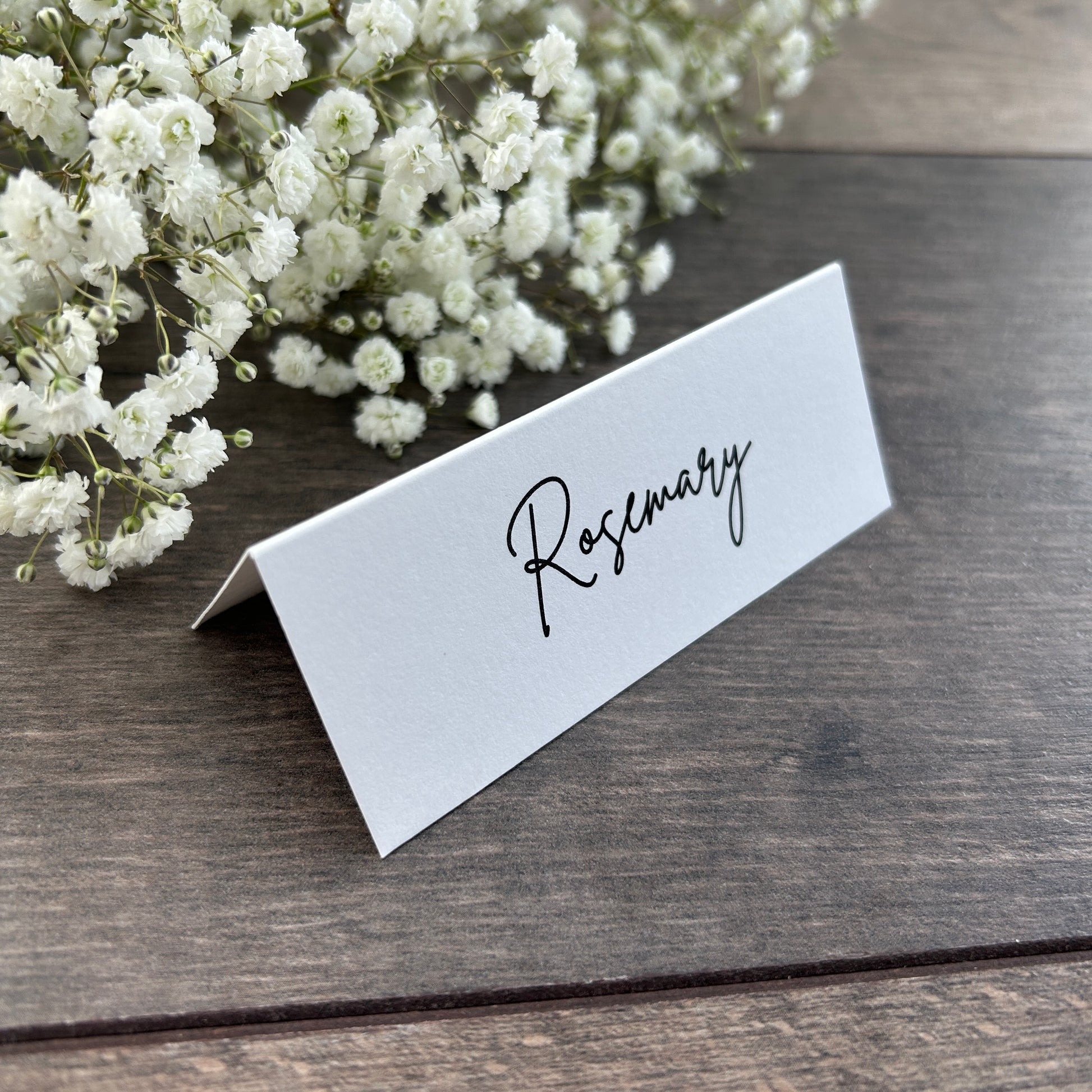 – Add table numbers or names below guest names in plain font for an additional 10p per card