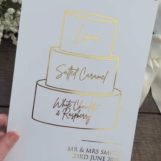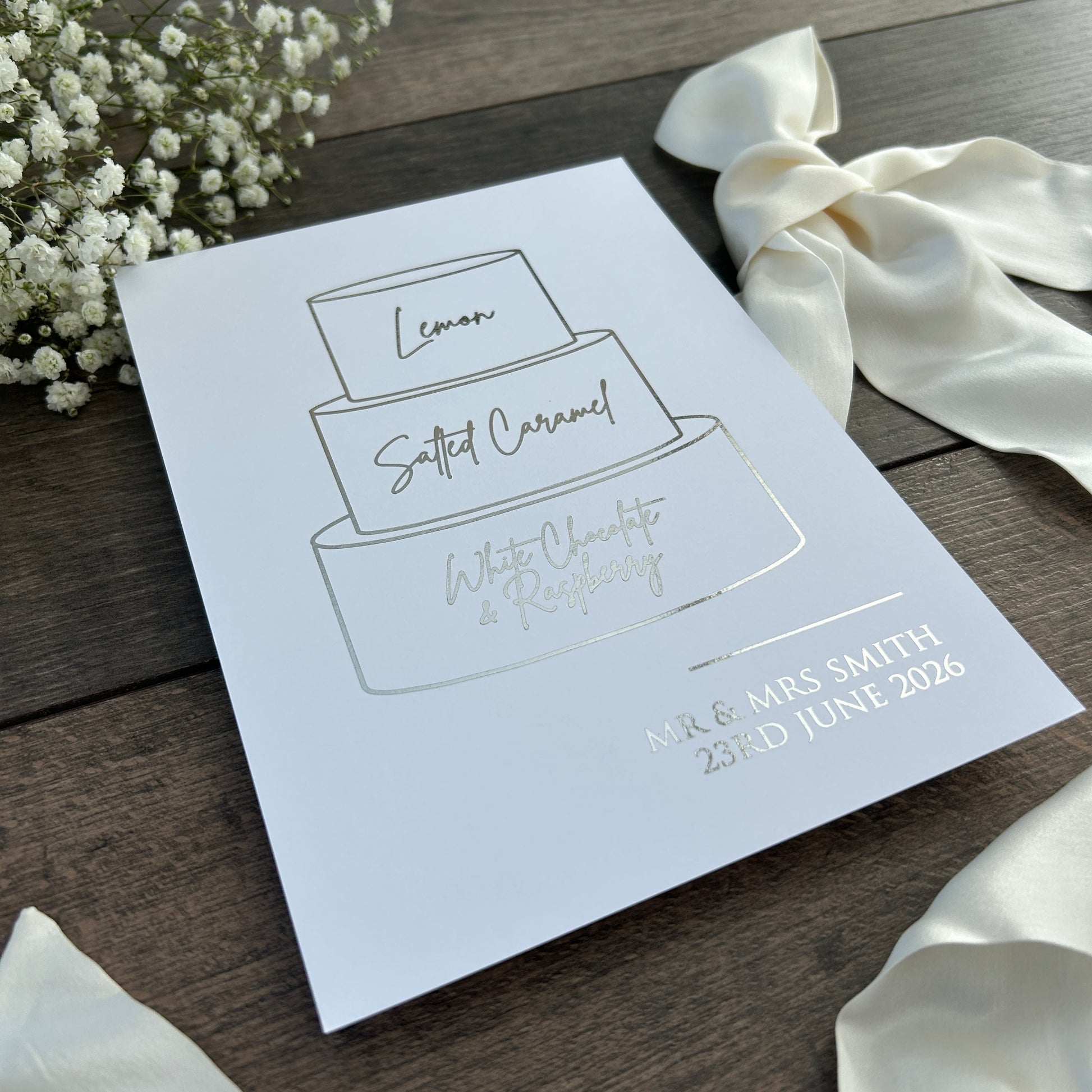 Wedding Cake Foiled Sign with Personalised Flavours / Style Eva