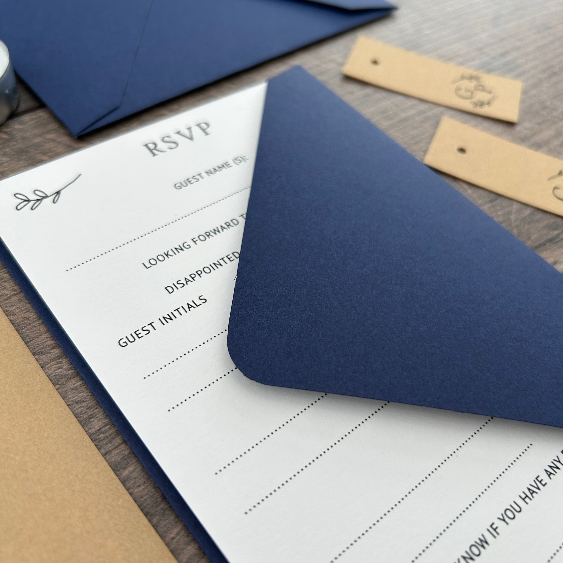 Choose to be a simple flat card, or add a backing card layer and even a back pocket to hold your information and RSVP cards.
