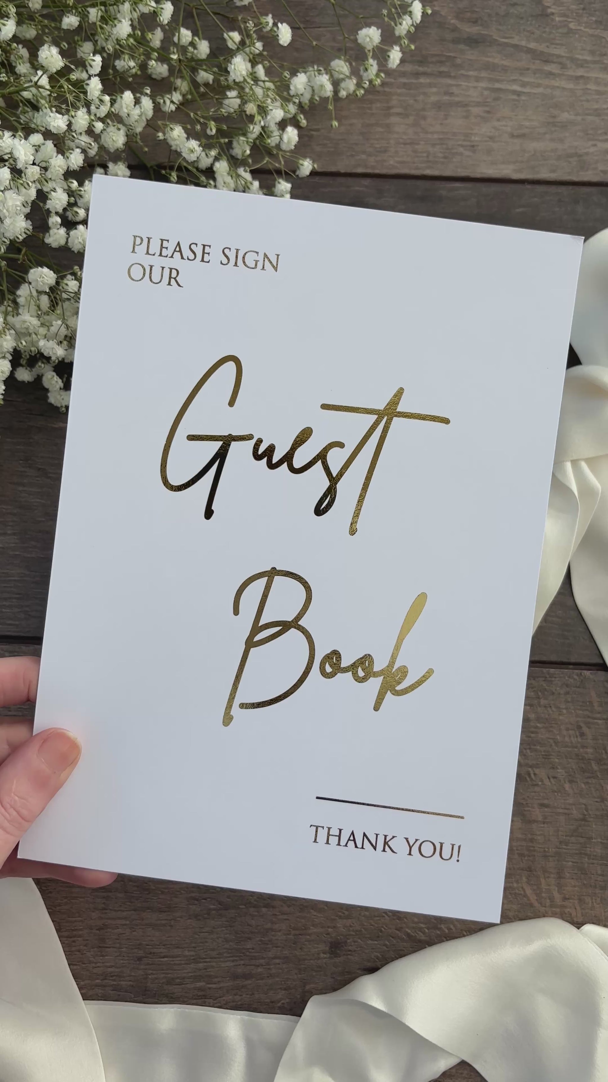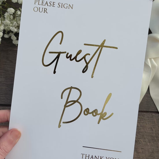 Invite your guests to leave their well wishes with this elegant foiled sign — a stylish way to display your Please Sign Our Guest Book message and create a lasting keepsake from your day.