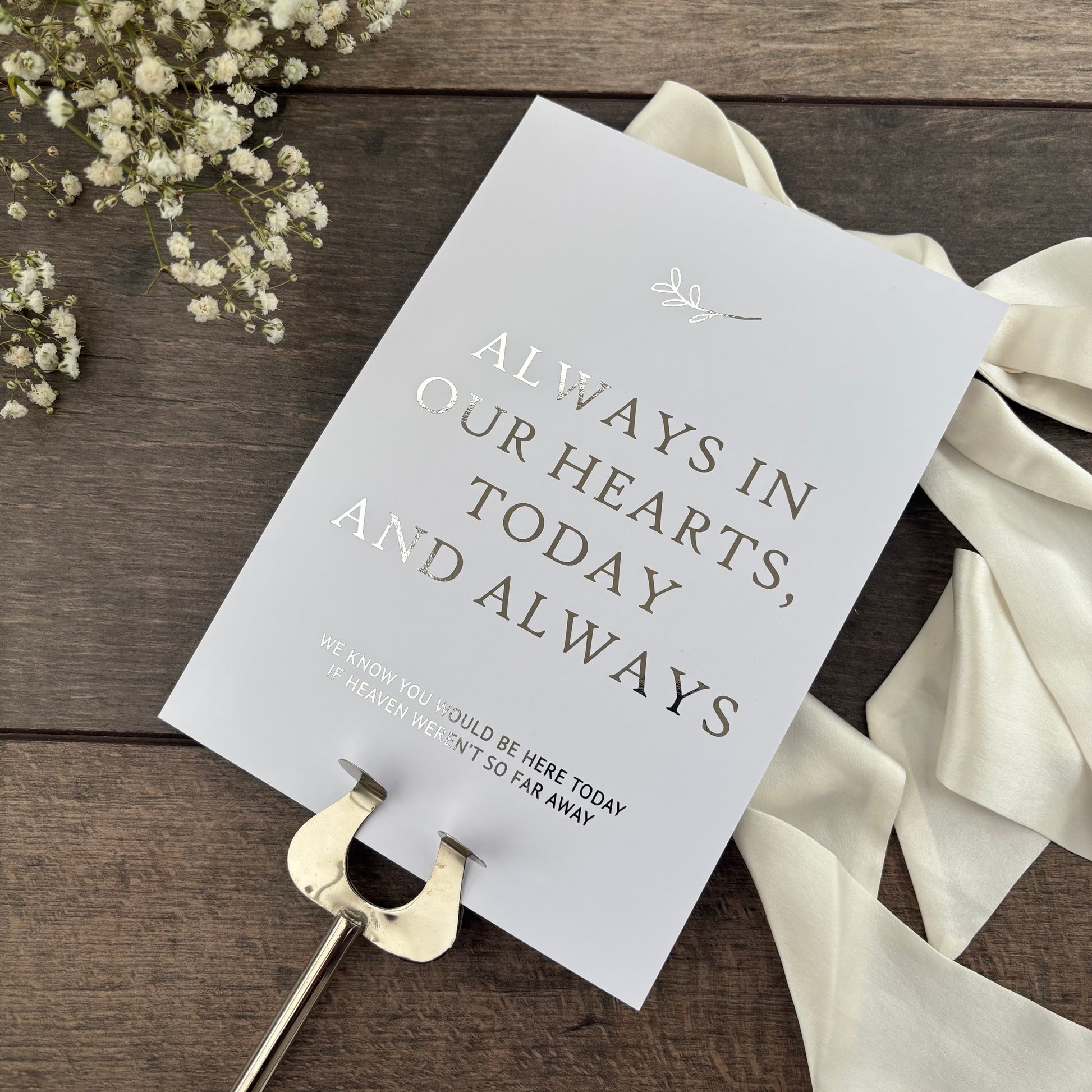 Add a heartfelt and stylish touch to your wedding venue with this elegant 'In Loving Memory' Foiled Sign honouring those loved ones closest to your heart on your special day.