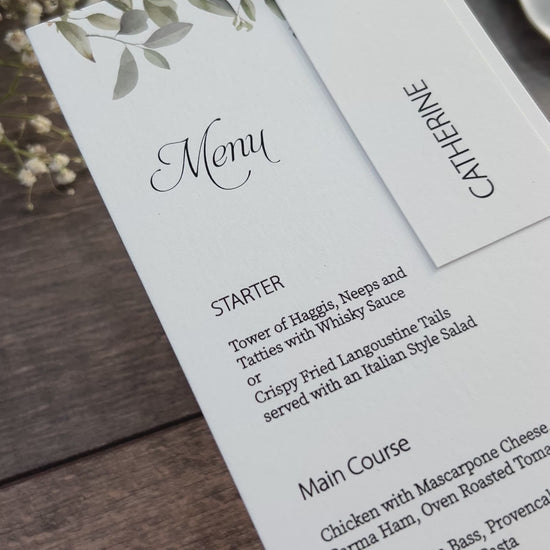 Style your wedding tables with our elegant printed Fiona Menu Cards, with Botanical Design available on beautifully light textured card. For a fully coordinated look, you can choose to add our matching Place Cards and Ribbon Tie.