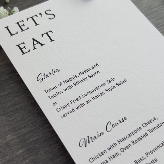 ♡ Matches menu card — 300gsm lightly textured card in choice of colours