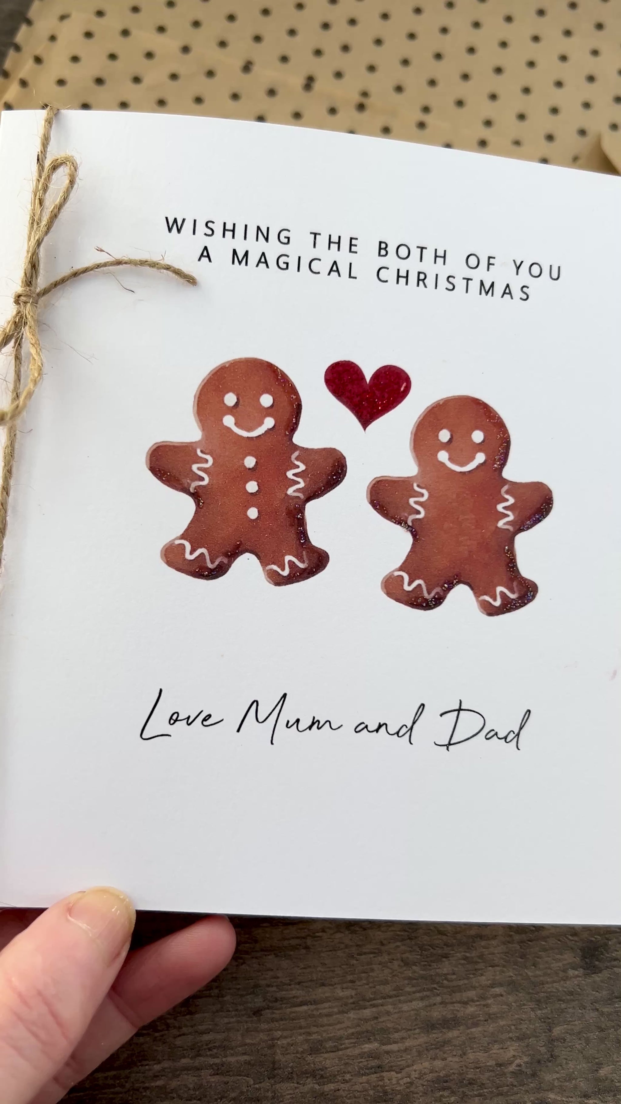 š Personalised āwishing the both of you a magical Christmas ā Card ā Personalised with senders names. Hand-Glittered ā Rustic twine and envelope.