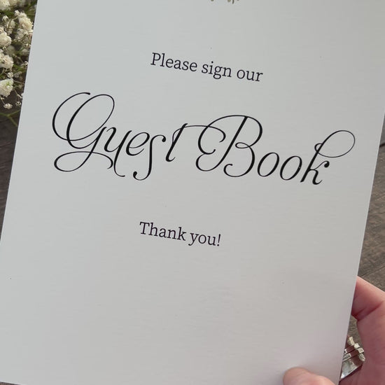 Invite your guests to leave their well wishes with this elegant printed sign — a stylish way to display your Please Sign Our Guest Book message and create a lasting keepsake from your day.