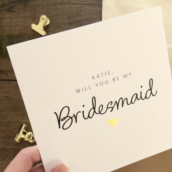 Printed on premium slight textured cardstock with black print wording and a metallic foil heart finish, these cards add an elegant sparkle to your Bridesmaid (or other) proposal.